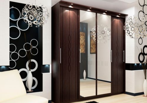 К примеру, если вы собираетесь хранить большие книги – для них можно предусмотреть специальные, нестандартного размера полки или ниши, а полки со стеклянными дверцами помогут расположить документы, сувениры и награду, а отсеки для белья и обуви могут быть полностью исключены. Изготавливая мебель на заказ, вы сможете подобрать именно тот вариант отделки и цветовое решение, которого бы вам хотелось, возможно все: сочетание нескольких цветов, разные фактуры, сочетания металла и стекла.